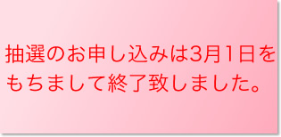 ●抽選の当落はメールにてご案内させていただきます。ホームページ上では発表致しません。