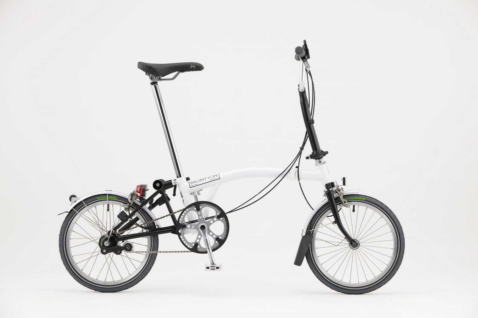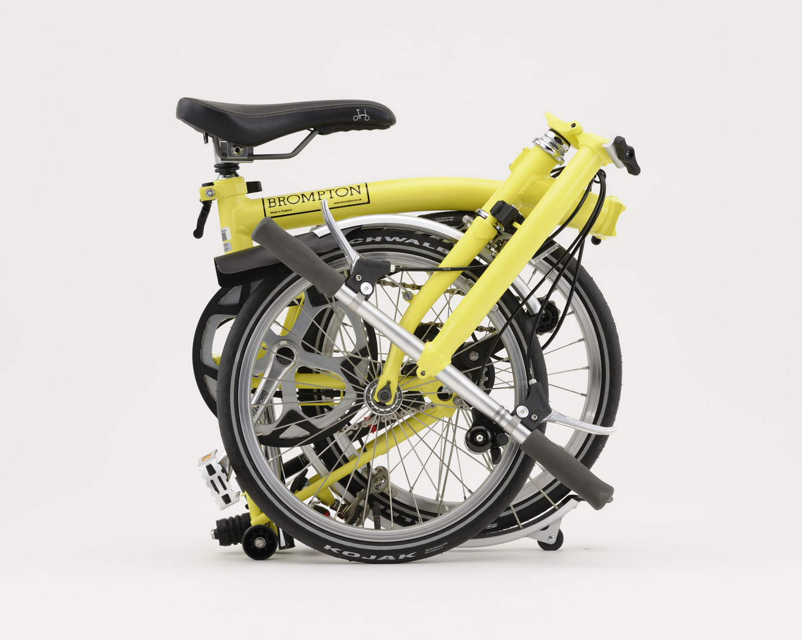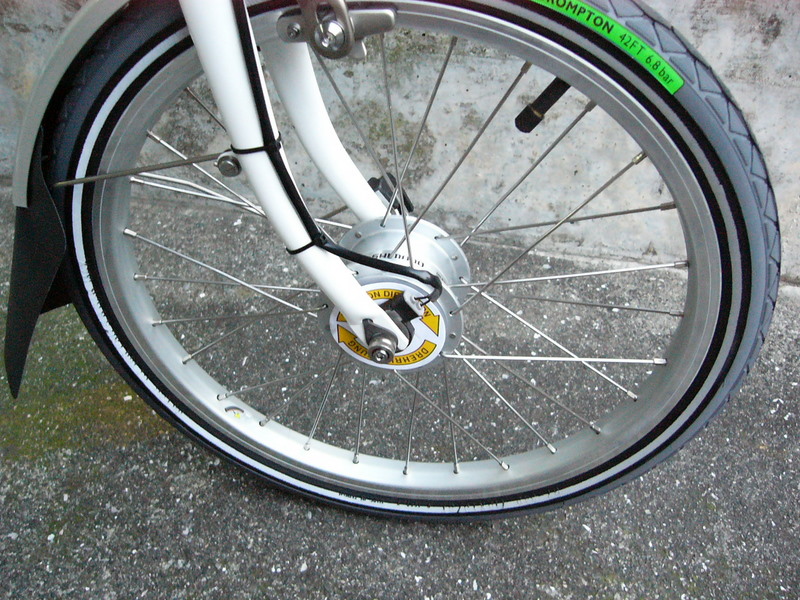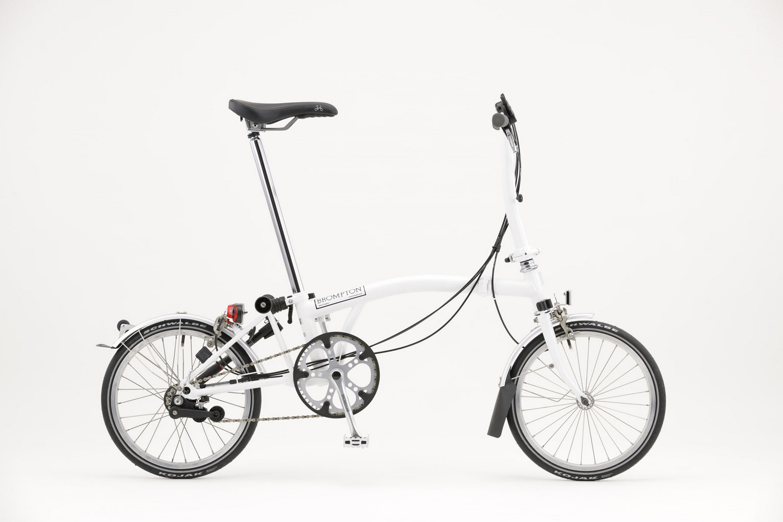 レタリングをホワイトのみとし、リフレクトラインが入ったBROMPTONオリジナルのシュワルベ コジャックタイヤ採用。