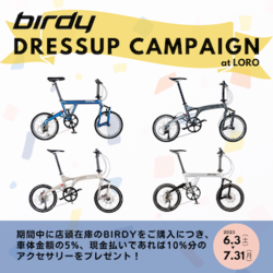 期間中、birdy購入の際に購入車体金額に対し「5%分のアクセサリープレゼント!」
