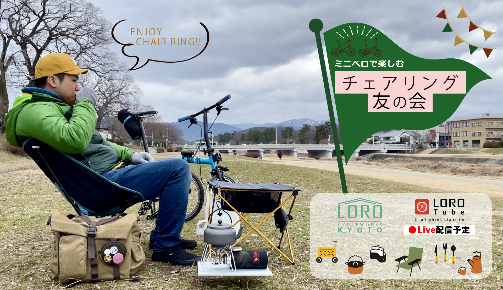・10:40 頃 LOROtube Live配信開始 (参加者のこだわり車体&チェアリングを楽しむアイテムを紹介)