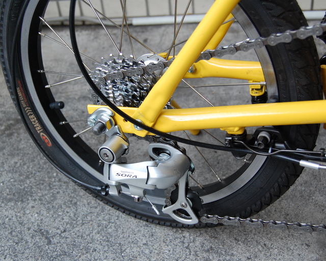 変速系には、可愛い見た目に反してシマノの小径車専用コンポーネントCapreo(9Speed)に変更。ノーマルとは比べ物にならない走行&変速性能を実現しています。