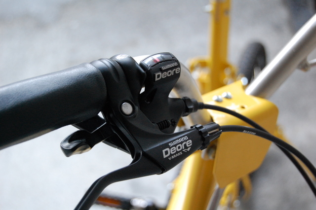 ブレーキはSHIMANO Deore&Alivioに変更しました。車体との相性も良好でガチッと効きますのでDiBlasiユーザーの方はこれだけでもやる価値アリです。