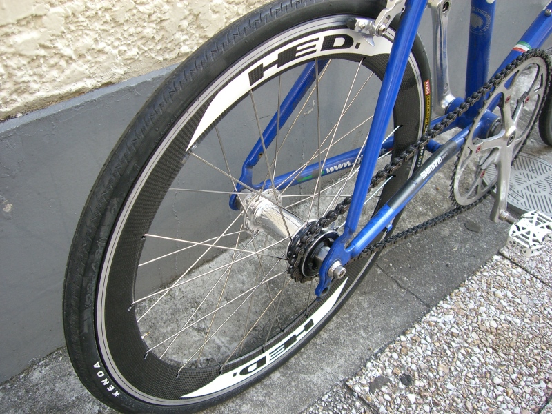 HED のカーボンリム×ホワイトインダストリーの偏芯ハブにて PANTOをシングル化しました。