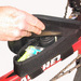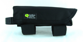 リカンベント用フレームバッグ。メインストラップはフレームの上側に巻き付け、フロントスタビライザーストラップはステムやフロントディレーラー用ポストに巻き付けて使用。