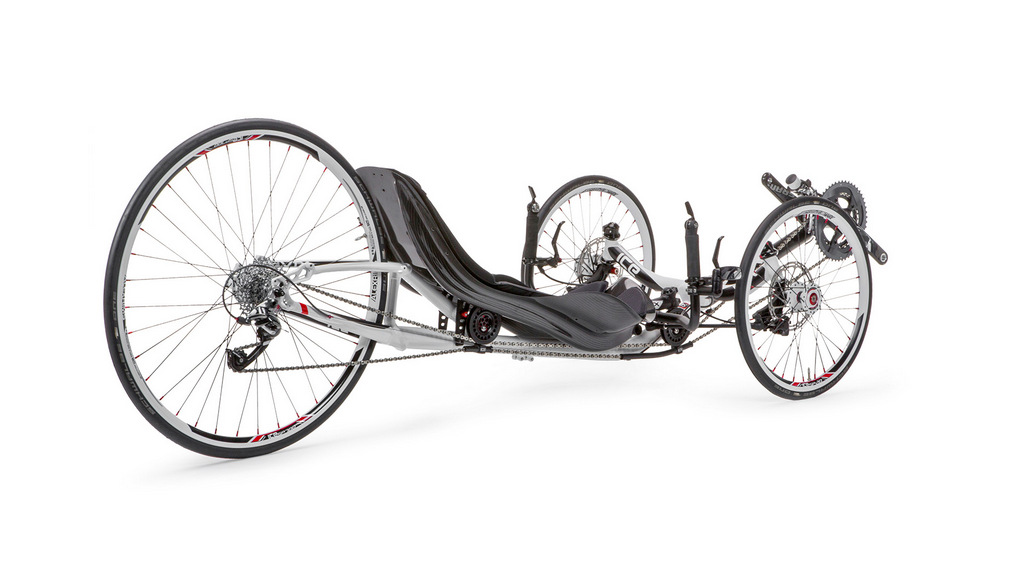 スピードを目的に設計された前輪20インチ(406)、後輪700cのスポーツトライク(三輪車)。