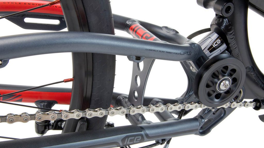 後輪が前輪に収まるように設計された独自の折り畳み機構(C.F.T)により、工具を使わずに約30秒で折り畳みが可能。