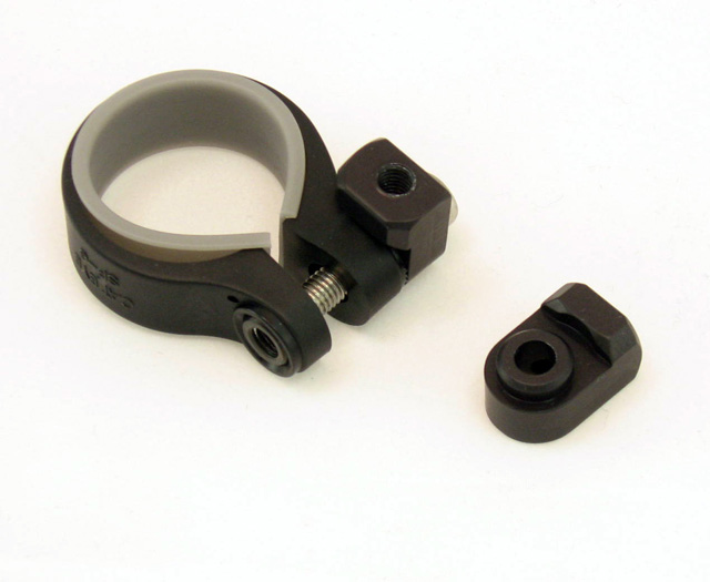 Multi-Purpose Accessory Mountを、バンドを使用せずに直接ボルト留めしたい場合や、90°の角度でないと取り付けられない場合に使用。また、ハンドルバーと並行に取付けしたい場合はバンドとこのパーツを併用します。