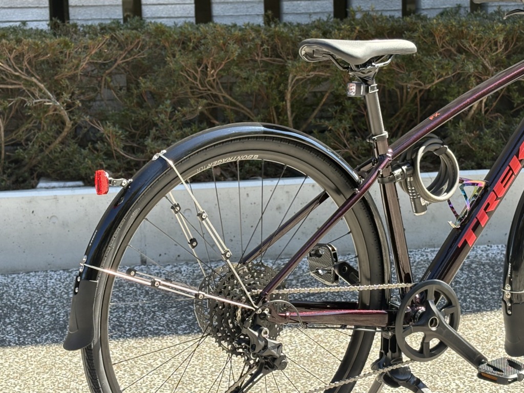 TREK純正の《TREK NCSフェンダーセット》であれば、元々完成車で付いていた設計だったのでは無いのかと錯覚するぐらいに綺麗に纏まってくれます。