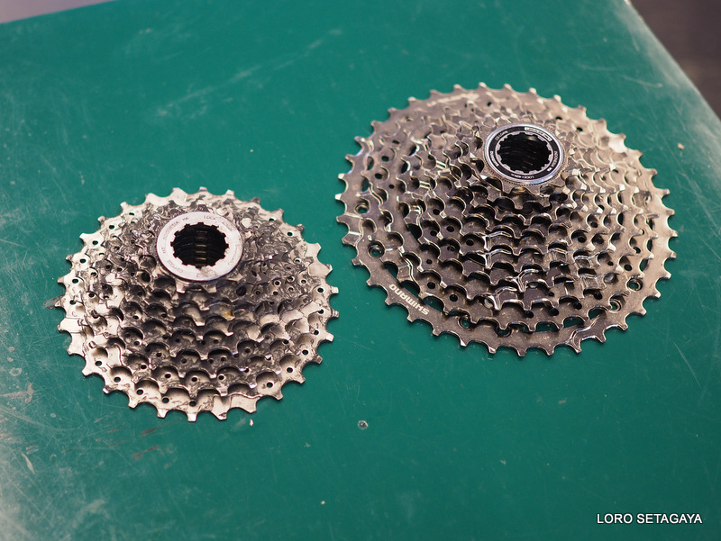 写真左がもともとのスプロケット11-30T、右がCUESの11-39T