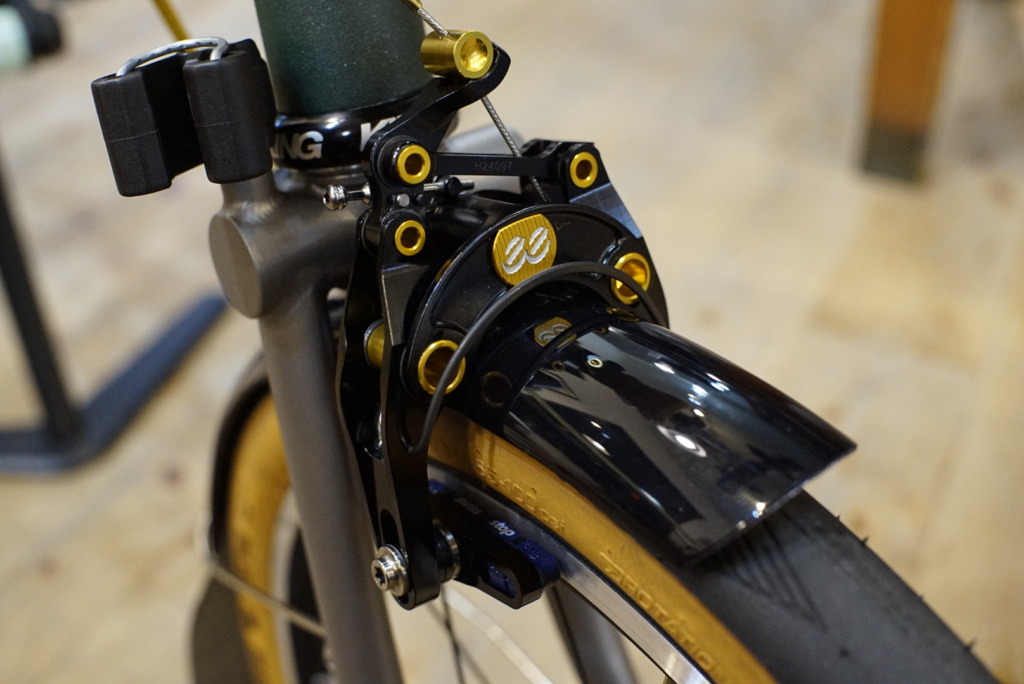 ノーマルのゴールドよりも真鍮の色に近く、このBROMPTONの車体色を際立たせるワンポイントとなっています。
