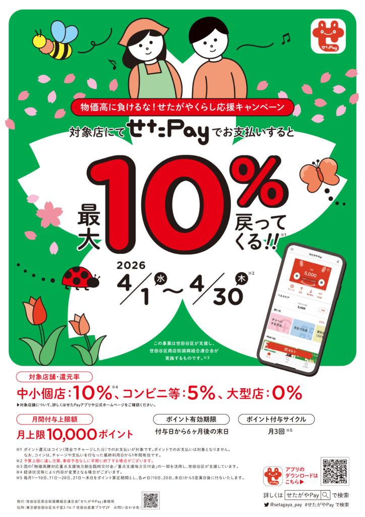 【キャンペーンのお知らせ】4月1日(水)から最大10%還元「物価高に負けるな!せたがやくらし応援キャンペーン」を実施します!