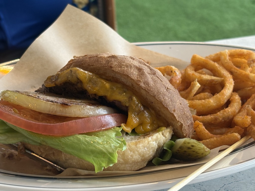 看板メニューのARMANDOチーズバーガーのセットで自家製のバンズに自家製のパティ―と最強の組み合わせ。