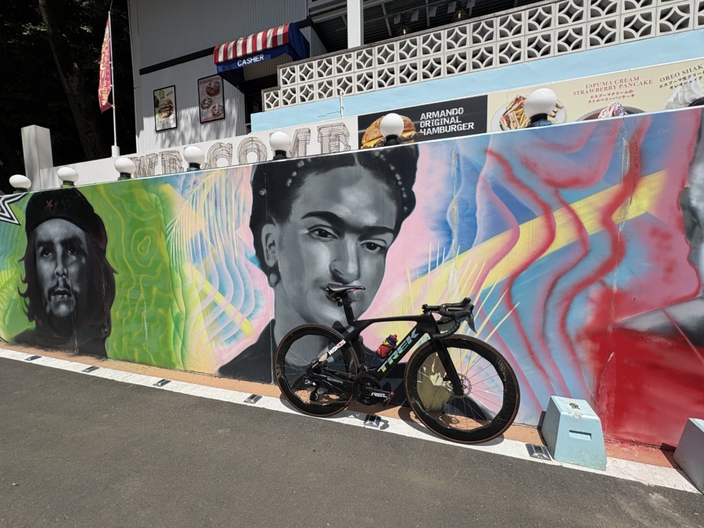 お店の目の前には駒沢公園があり、真横にはラーメン屋さん(一風堂)とローソンがありますので、良くブルべなどのゴール地点になることが多いいです。