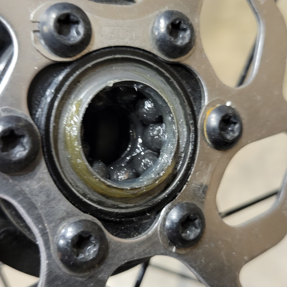 グリスが黒っぽくなっているのは、車輪が回転する際に、ベアリングが擦れるので、