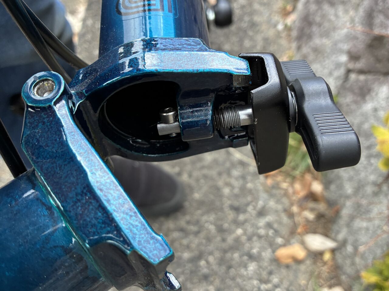 BROMPTONロゴ裏の下に向いて凹っとなっている部分です。