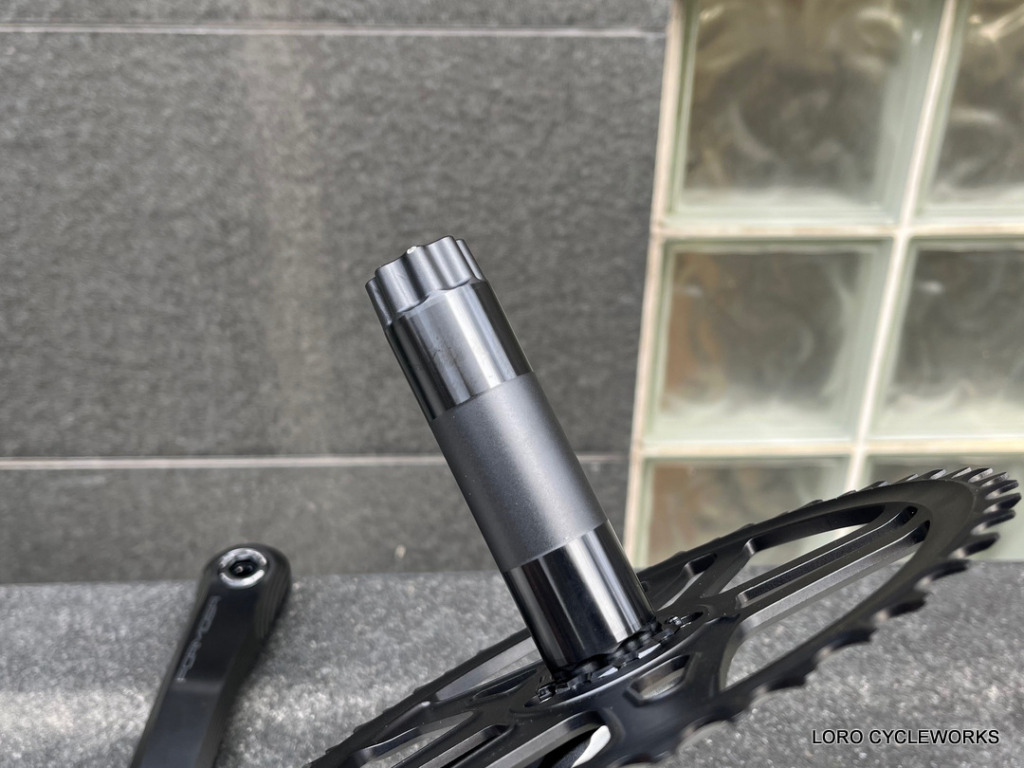 精工に削り上げられたクランクアームは見た目の美しさだけではなく、しっかりと剛性を保ちつつ軽量化がなされております。