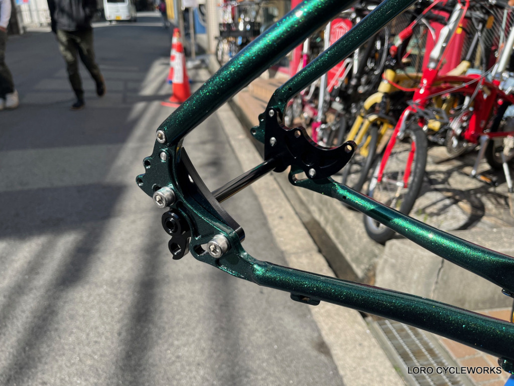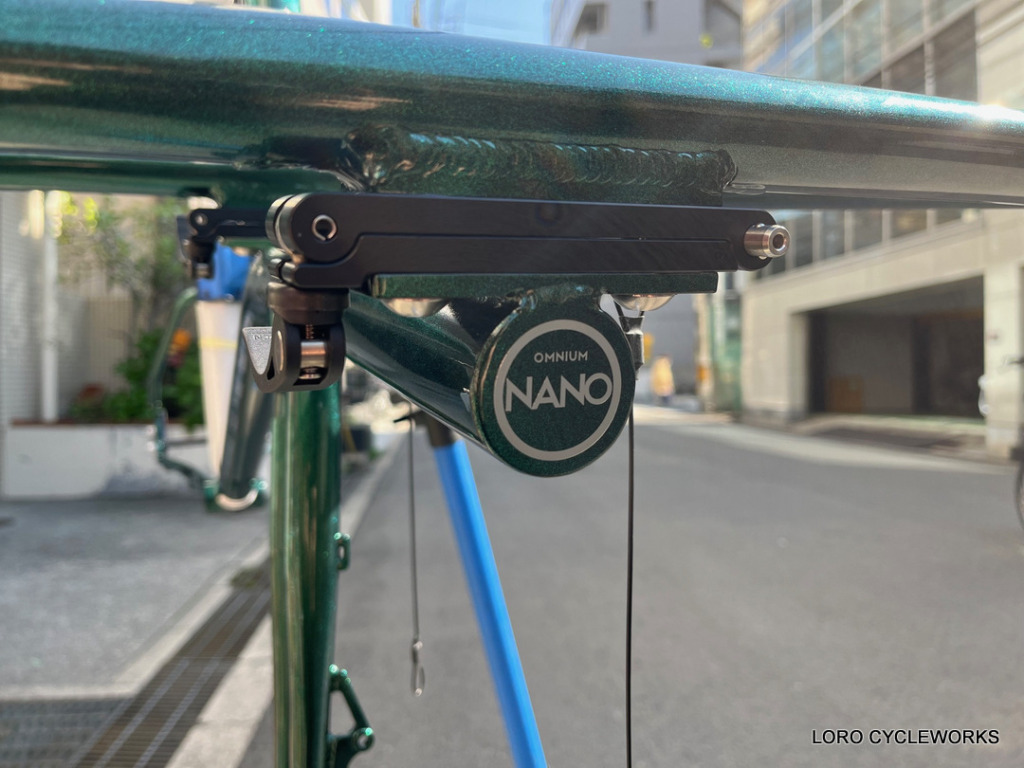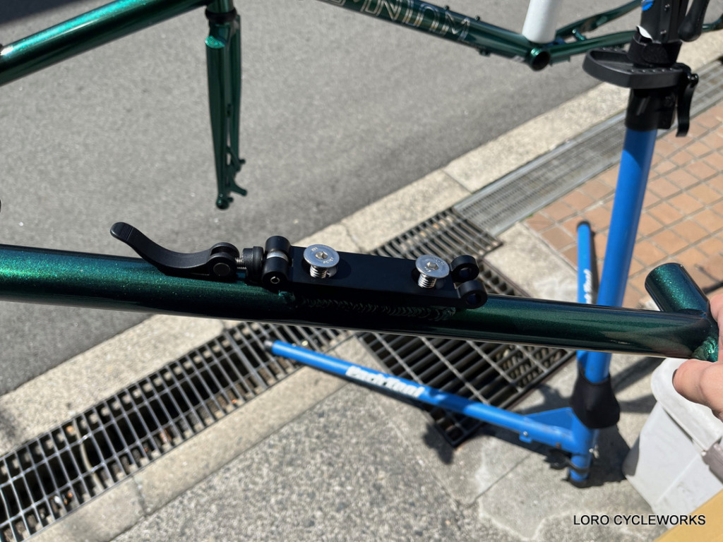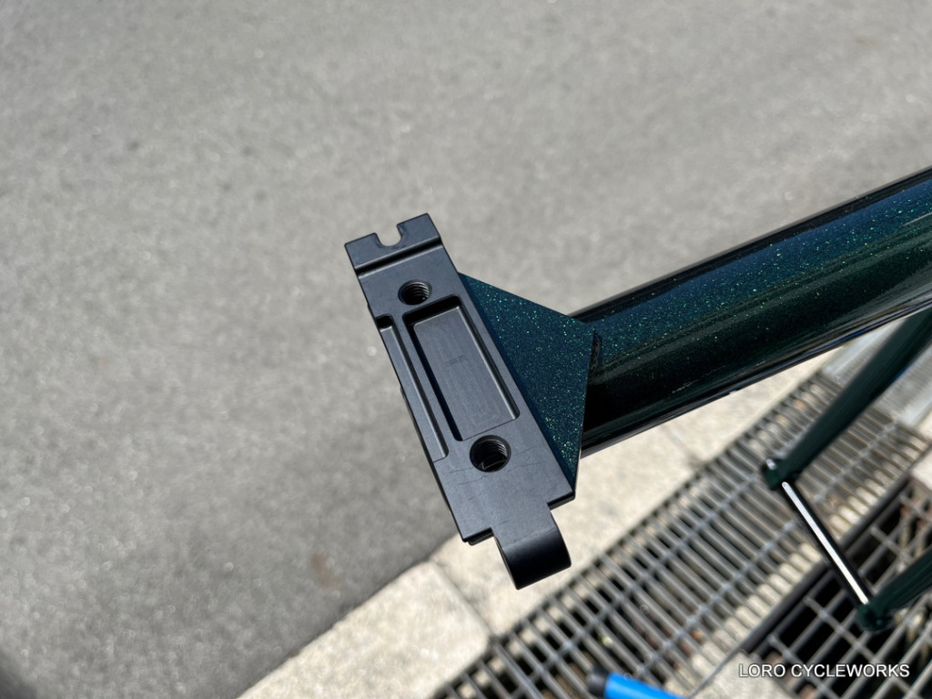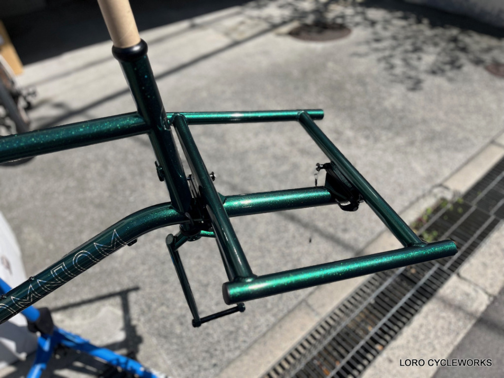そして、今回のフレーム組み完成車には必ず組み込んでおきたかったこちらのオプションパーツ、その名もOMNIUM Tilting Rack Bracket。