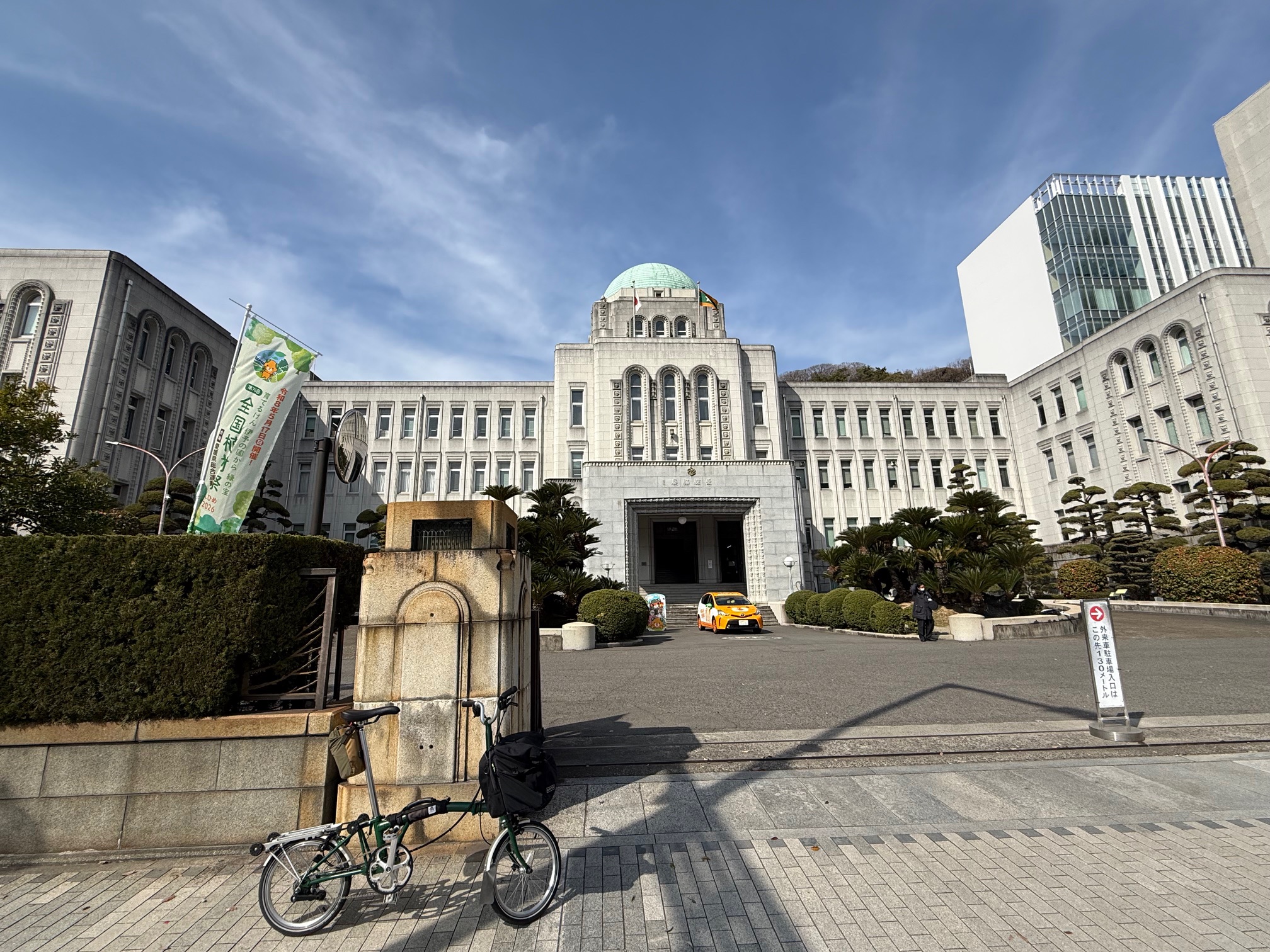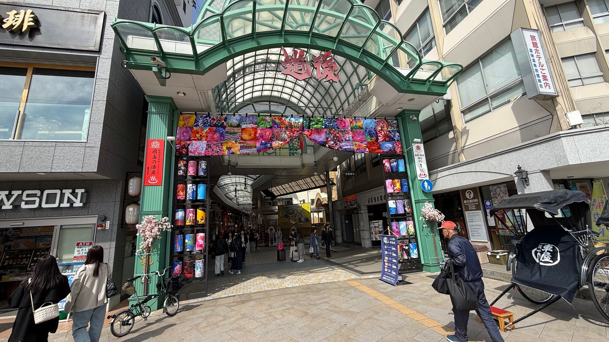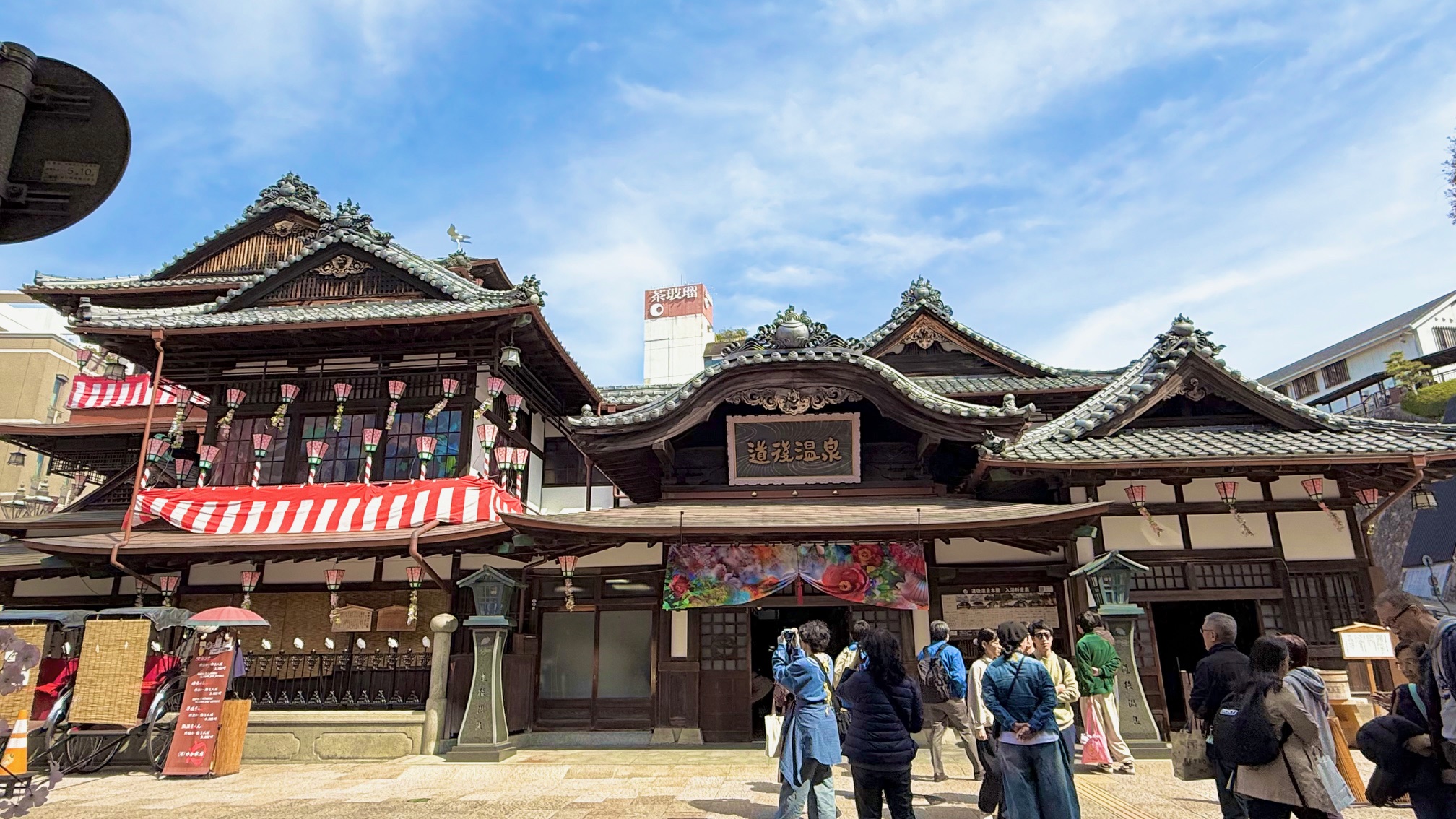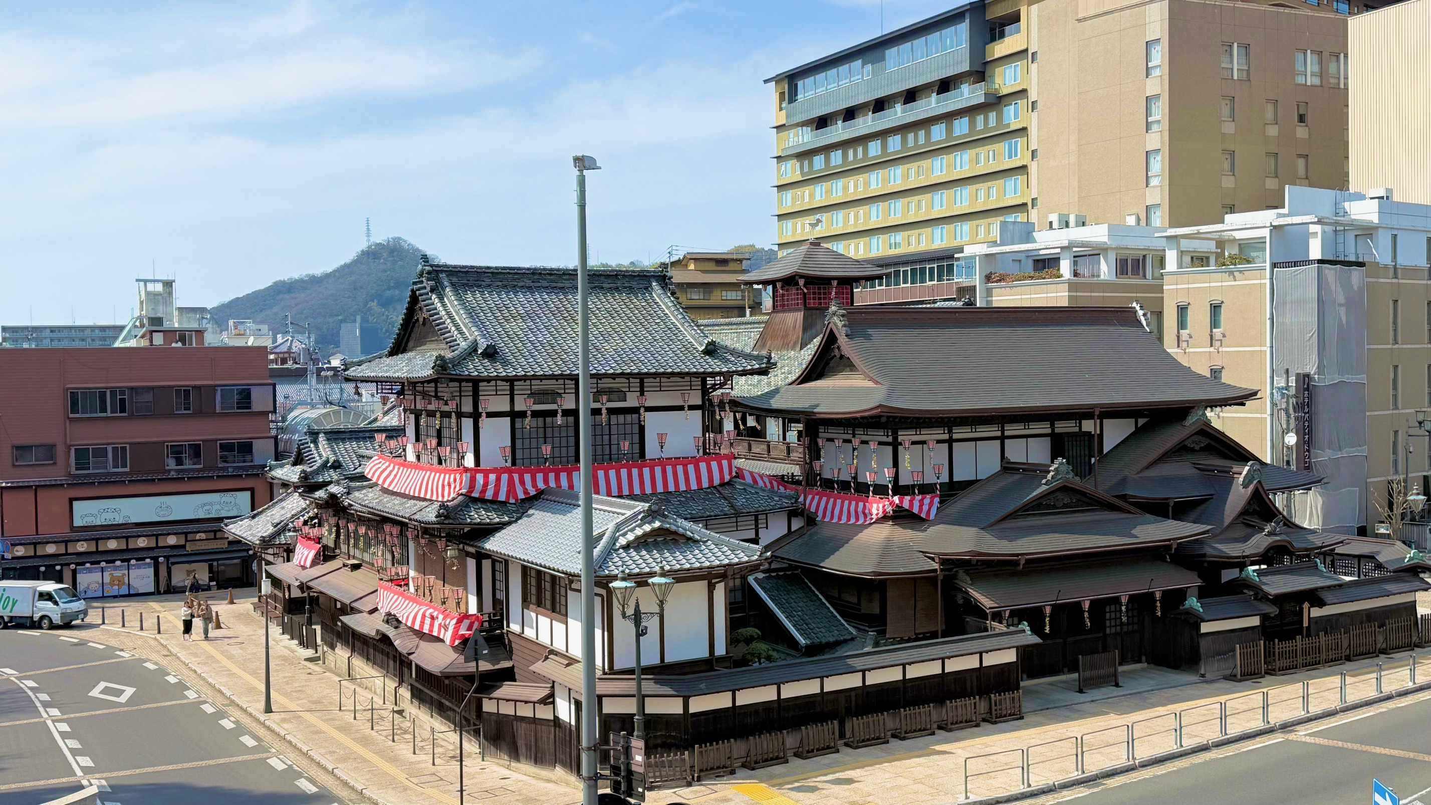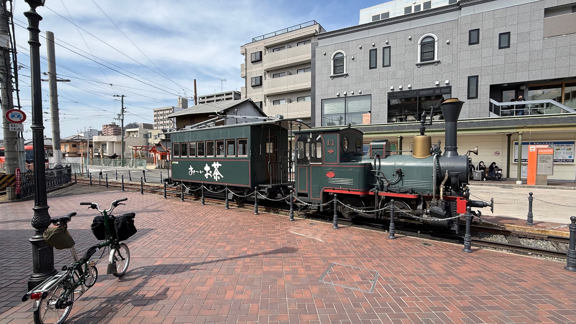松山城から自転車で約5〜10分ほどで道後温泉エリアへ。