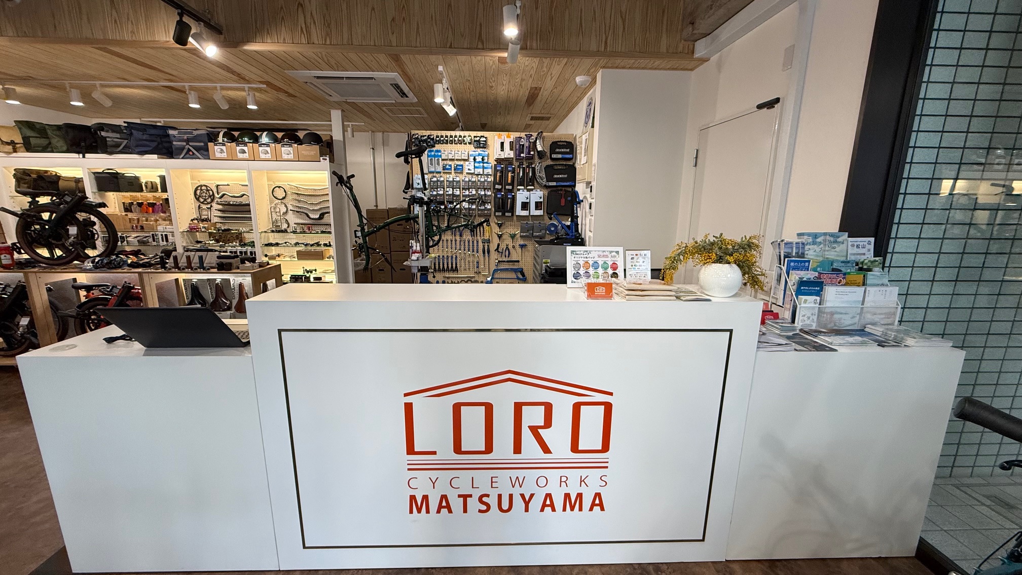テーブルや椅子も用意されているため、ゆっくりと自転車選びやカスタムの相談ができる空間となっています。
